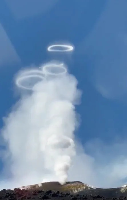 Cercuri de fum ies din Vulcanul Etna, din Italia / Foto: Captură Video