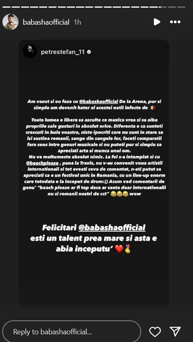 Ce a apărut pe pagina de Instagram a lui Babasha, după ce a fost huiduit pe Arena Naţională: „Tremur, sunt în şoc, mă doare sufletul”