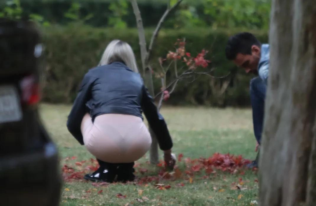 Ce a făcut blonda din imagine într-un parc din București, când credea că nimeni nu o vede