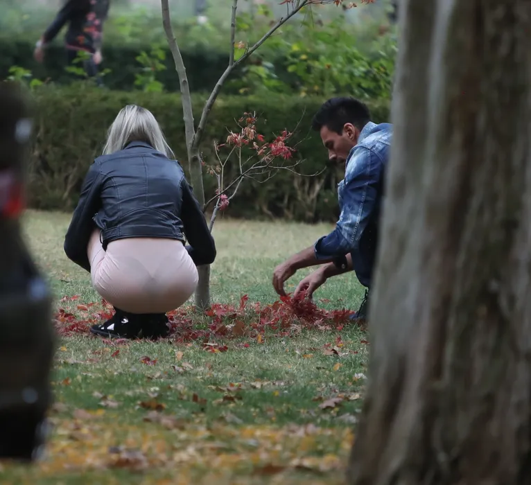 Ce a făcut blonda din imagine într-un parc din București, când credea că nimeni nu o vede
