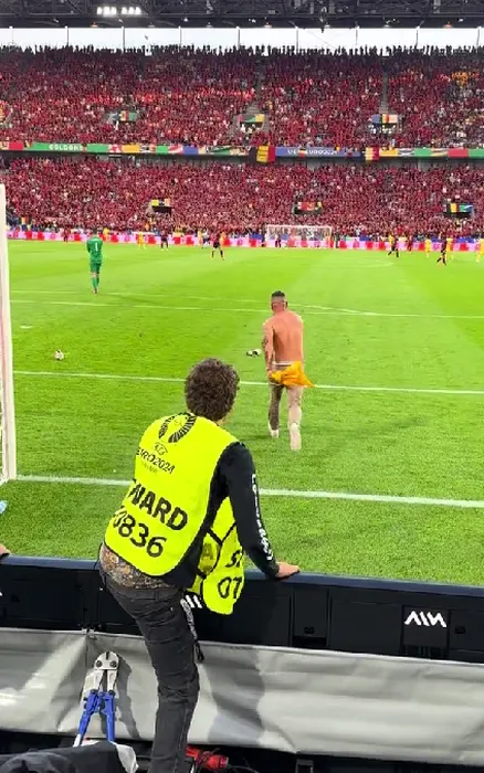Ce a făcut un spectator român, în pielea goală, după ce a intrat în teren: „Ia, bă, adidasu'”. Imagini virale de la meciul României!
