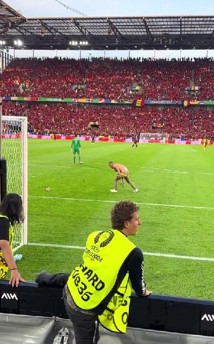 Ce a făcut un spectator român, în pielea goală, după ce a intrat în teren: „Ia, bă, adidasu'”. Imagini virale de la meciul României!