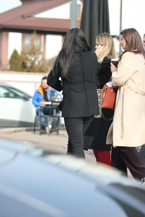 Andra iese din restaurant, alături de prietenele ei (Foto: CANCAN.RO)