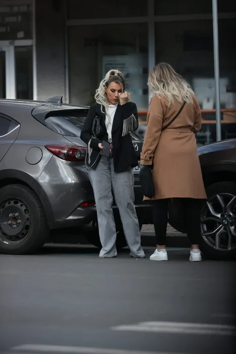 Amna și Adina Halas continuă în stradă discuția din restaurant (Foto: CANCAN.RO)