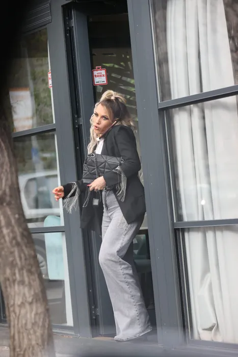 Amna părăsește restaurantul (Foto: CANCAN.RO)