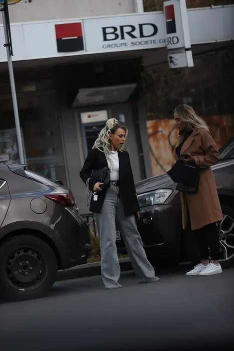 Amna și Adina Halas continuă în stradă discuția din restaurant (Foto: CANCAN.RO)