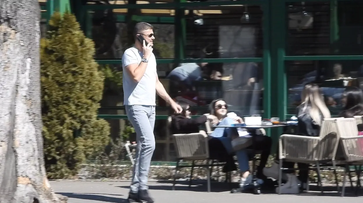 Cristian Boureanu a parcat și se îndreaptă, cu telefonul la ureche, către restaurant (Foto: CANCAN.RO)