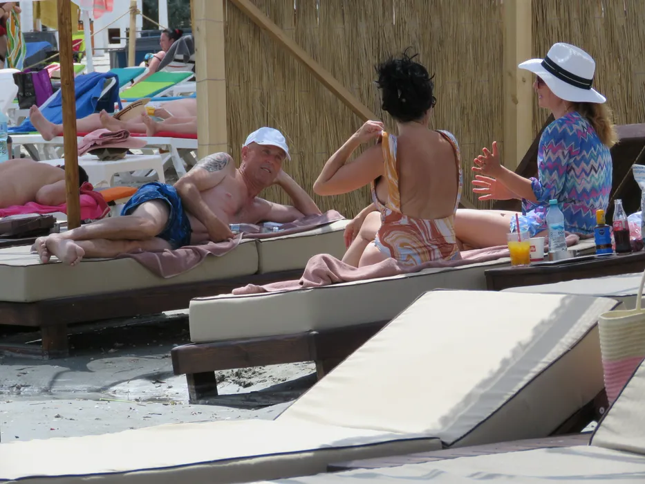 Mugur Mihăescu și-a tras șapca pe ochi și s-a întins la vorbe cu soția (Foto: CANCAN.RO)