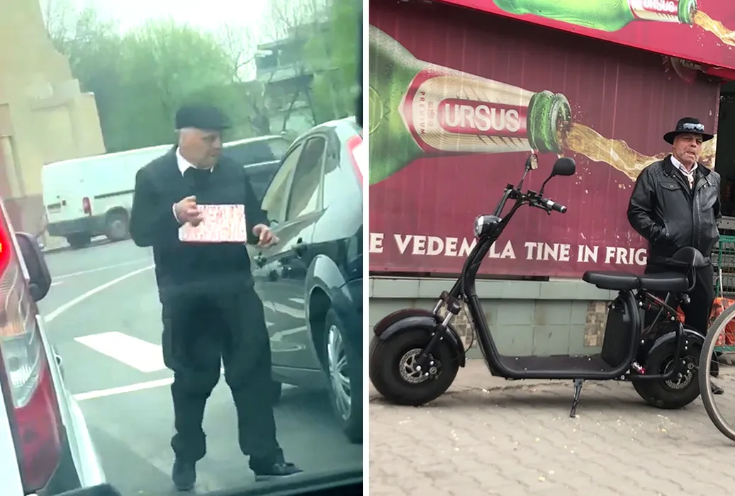 Cerșește la Arcul de Triumf, dar, în realitate, e mare boier… În ”civilie” se poartă numai la costum și pălărie + are casă la Buftea și umblă cu scuter de 2.000 €!