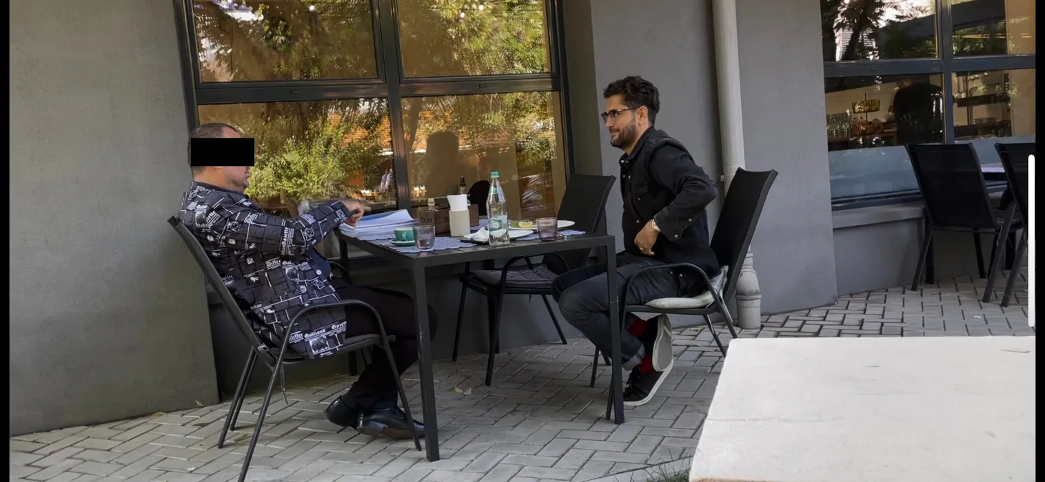 Cezar Ouatu, la terasă cu un amic