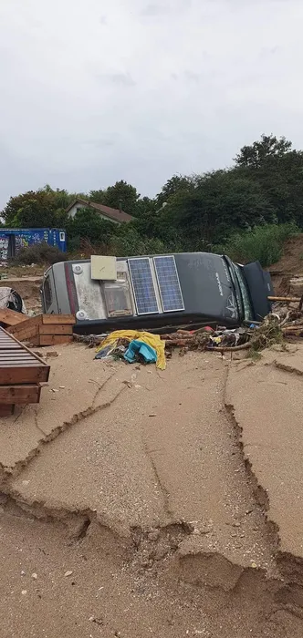 Ciclonul a devastat total Vama Veche! Mașinile și gheretele au ajuns pe plajă, apa a măturat tot. VIDEO