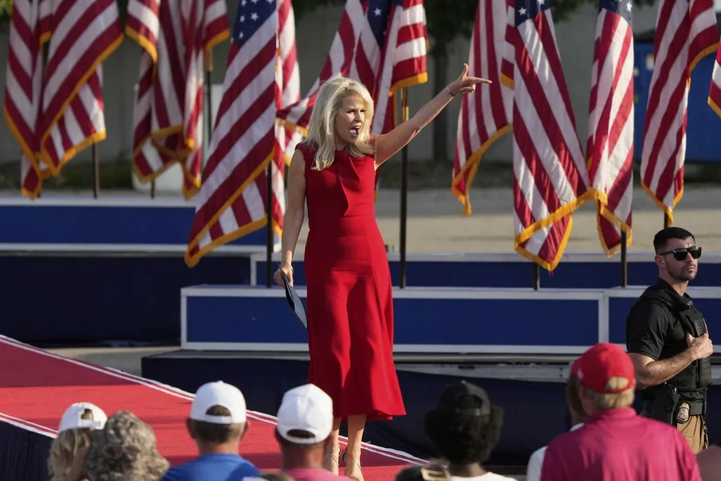 Monica Crowley, șefa protocolului Statelor Unite, înainte de un discurs al președintelui Donald Trump la un miting, joi, 3 iulie 2025, în Des Moines, Iowa. Foto: Profimedia