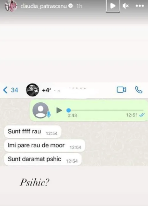 Claudia Pătrășcanu a făcut publice mesajele de la Gabi Bădălău. Afaceristul recunoaște că a înghițit o pungă cu pastile