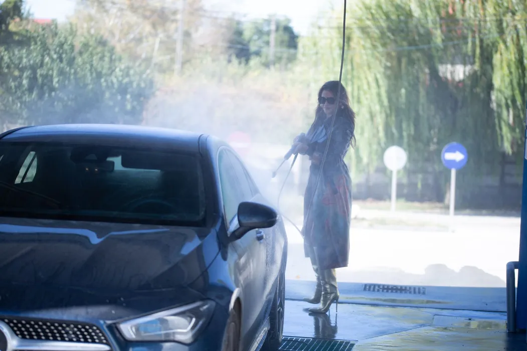 Claudia Pătrășcanu a făcut ”show” cu jetul de spumă: ”Sexy, sexy, știu că mă vrei…” Și-a spălat mașina în poziții demne de filmele pentru adulți