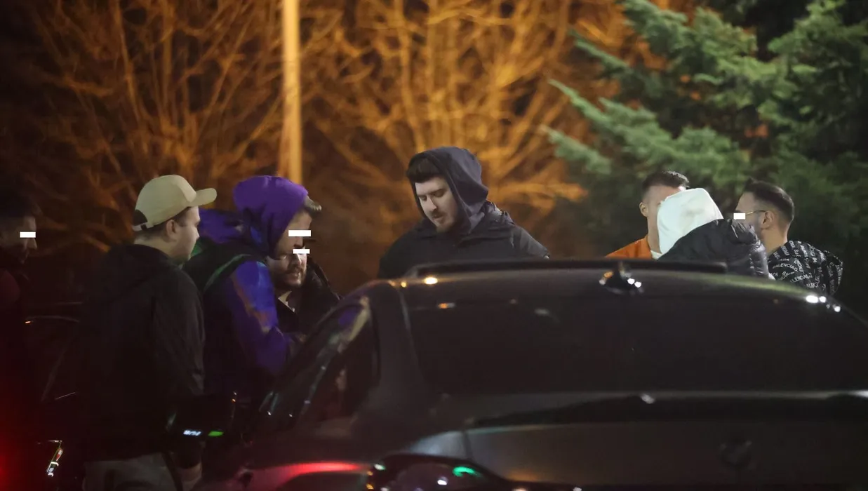 ”Colo” și prietenii lui s-au strâns la o vorbă, într-o parcare din Băneasa (Foto: CANCAN.RO)