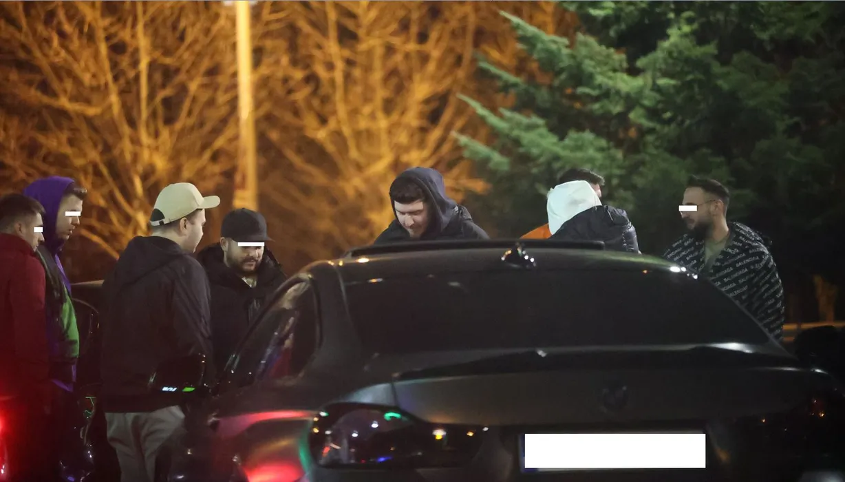 ”Colo” și prietenii lui s-au strâns la o vorbă, într-o parcare din Băneasa (Foto: CANCAN.RO)