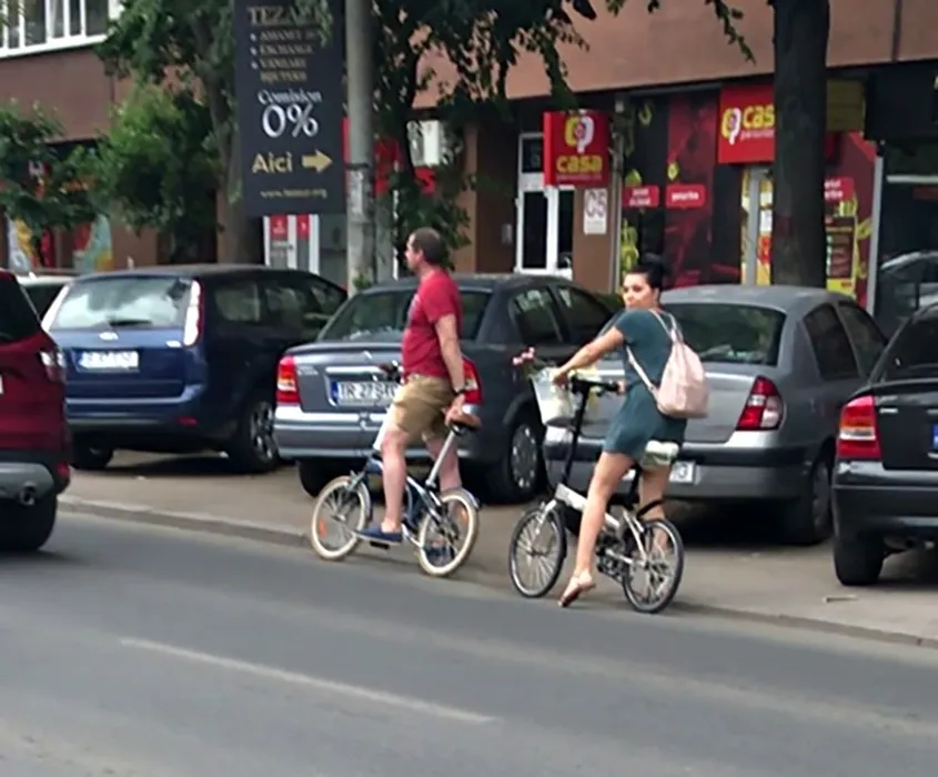 Corina și Robert așteaptă să treacă mașinile pentru a traversa
