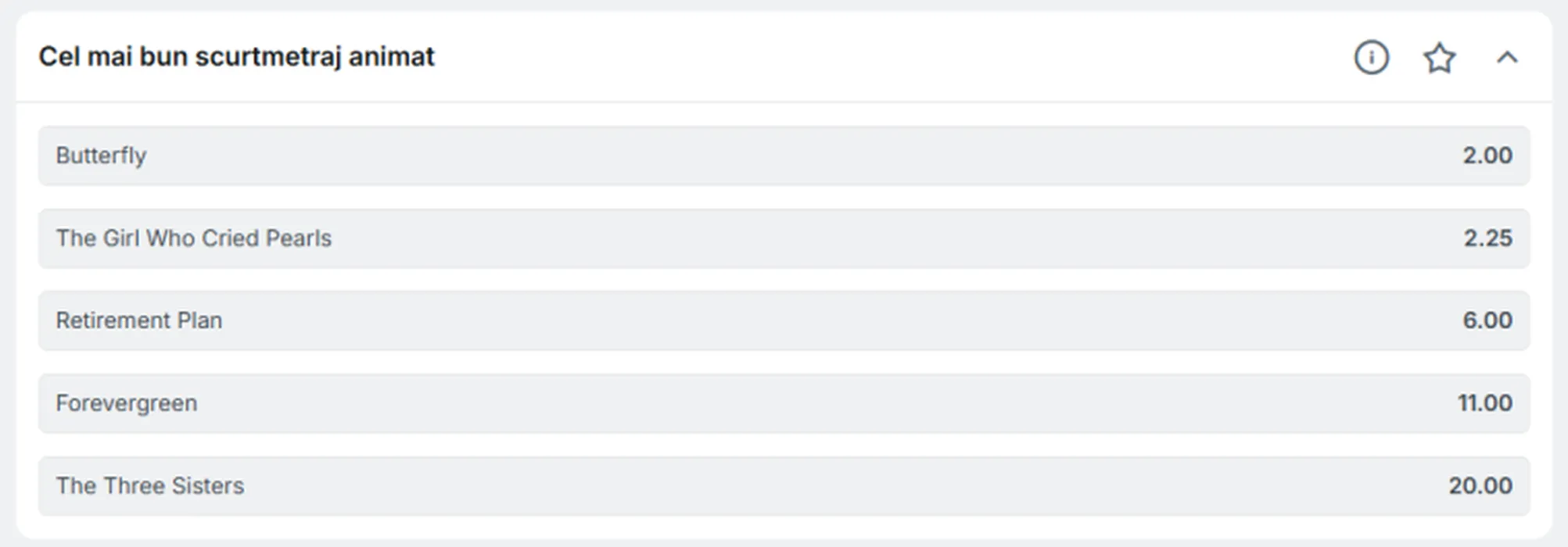 Premiile Oscar 2026: cotele la casele de pariuri. Sursa foto: Superbet