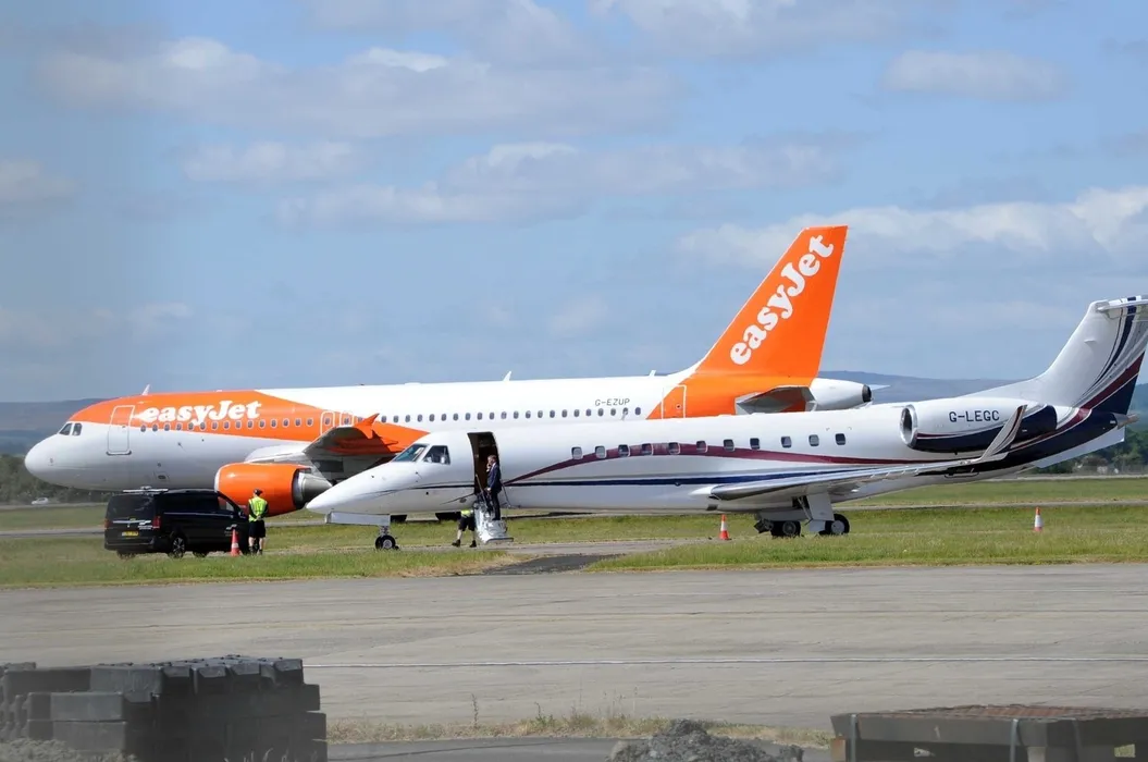 Prințul William și Prințesa Catherine au zburat cu un avion privat Embraer Legacy 600 pentru a ajunge pe aeroportul Glasgow din Scoția. Foto: Profimedia