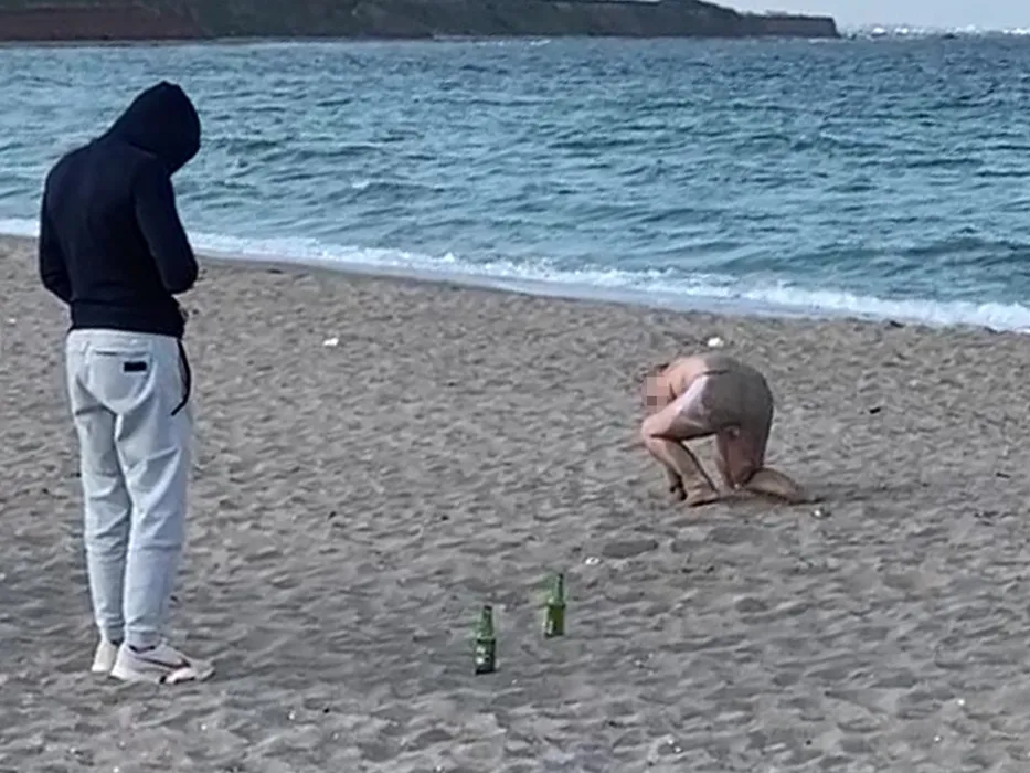 Haos în Vama Veche! ”Mort” de beat, zace în nisip, sub ochii prietenilor! A rămas doar în boxeri și…