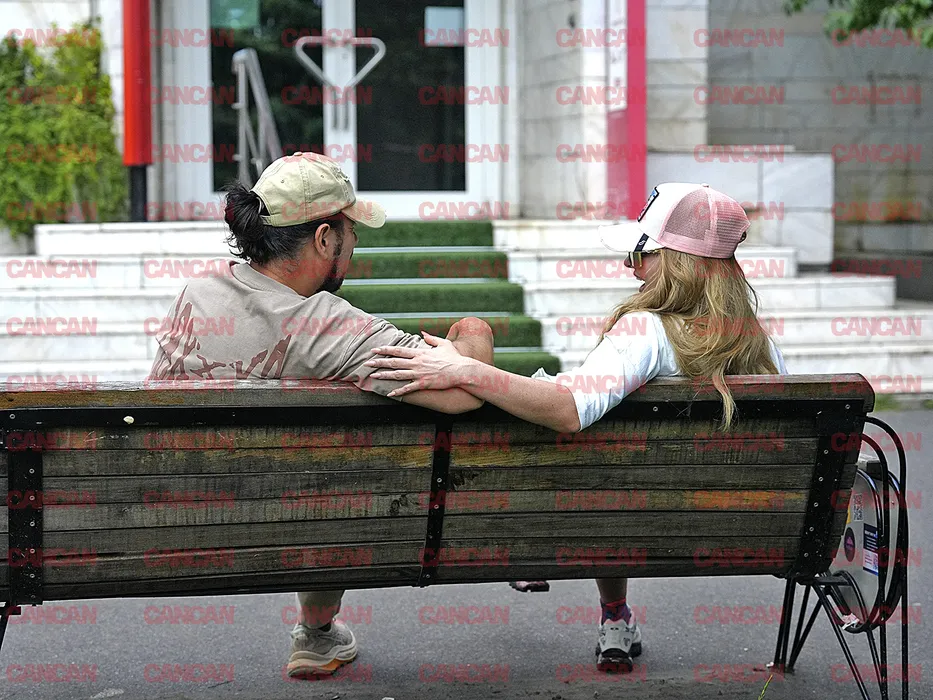 Delia și Răzvan Munteanu, pe bancă, în parc