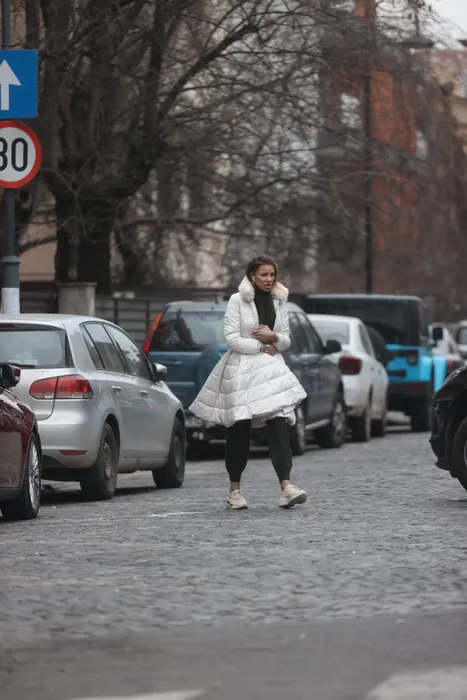 Bianca Drăgușanu a ieșit rapid din atelier să își mute mașina, care bloca altă șoferiță (Foto: CANCAN.RO)