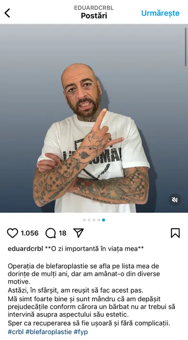Ochii lui CRBL s-au învinețit după operație. Foto: Instagram / CRBL