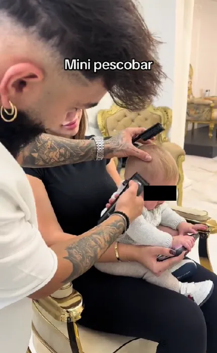 Fiul lui Pescobar, la frizerie/ Sursa foto: Captură TikTok
