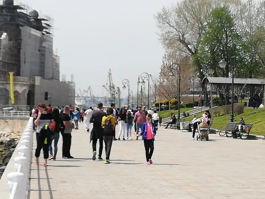 Constănțenii au ieșit la plimbare pe faleza de la Cazinou, de 1 Mai, înainte de Înviere