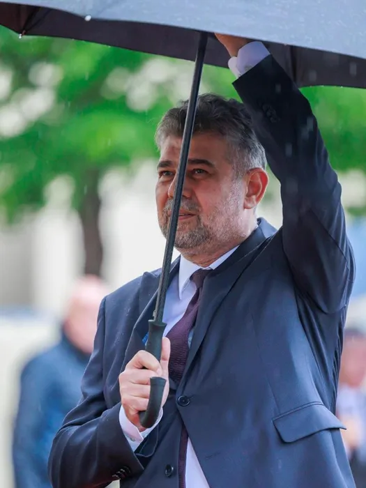 Premierul Marcel Ciolacu și-a ținut singur umbrela, fără să uzeze de protocol
