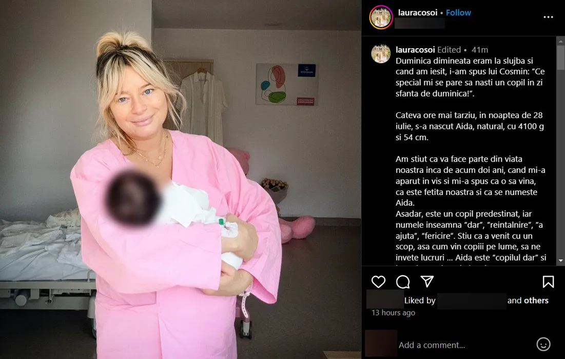 Laura Cosoi a devenit mămică pentru a patra oară, în urmă cu câteva zile / sursă foto: Instagram