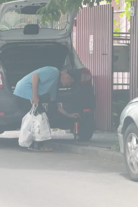 Cristian Tudor Popescu a ajuns acasă și își ia, din portbagaj, husa de rachete și sacoșele