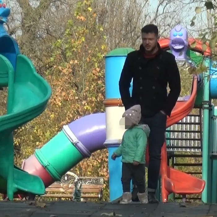 Victor Slav, în parc, cu fiica sa