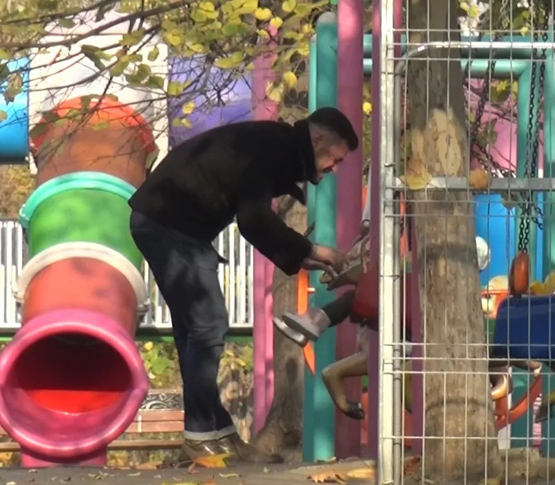 Victor Slav, în parc, cu fiica sa