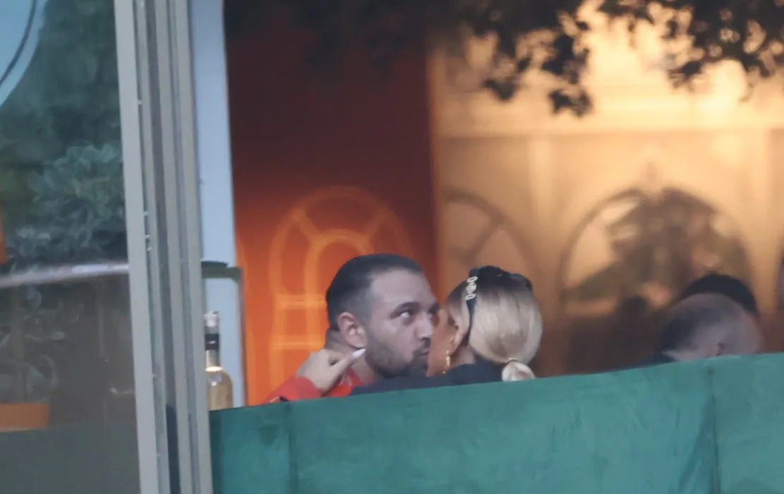 Ema Uta îl sărută pe Alex Bodi, la masă (Foto: CANCAN.RO)