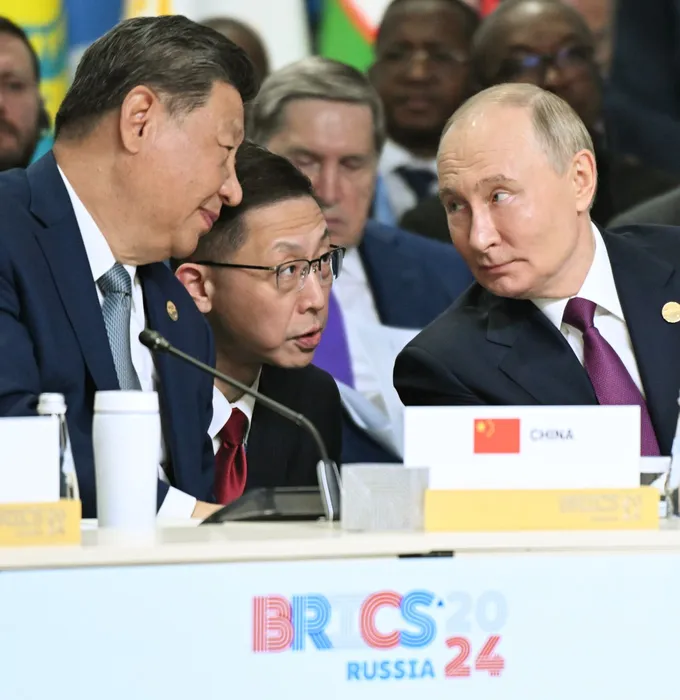 Președintele chinez Xi Jinping și președintele rus Vladimir Putin în timpul summitului BRICS din Kazan, Rusia, joi, 24 octombrie 2024. Foto: Profimedia