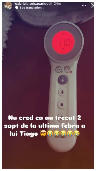 Ce temperatură avea Tiago dimineață. Sursa foto: Instagram / Gabriela Oțil
