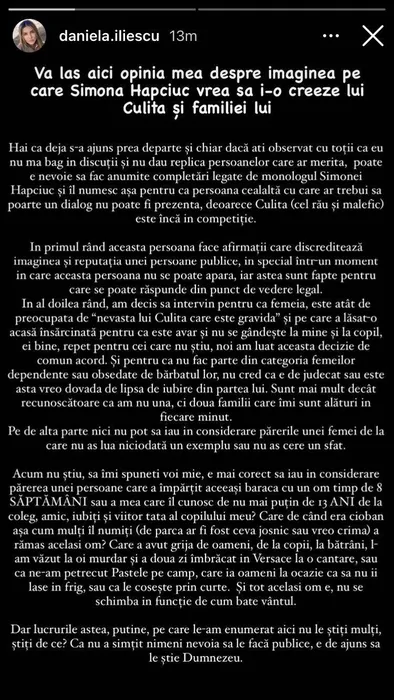 Daniela Iliescu, iubita lui Culiță Sterp, o pune la punct pe Simona Hapciuc: „Au mai ieșit și alte persoane din competiție, dar asumat și fără să facă circ”