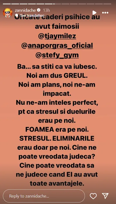Postarea făcută de Zanni / Foto: Instagram