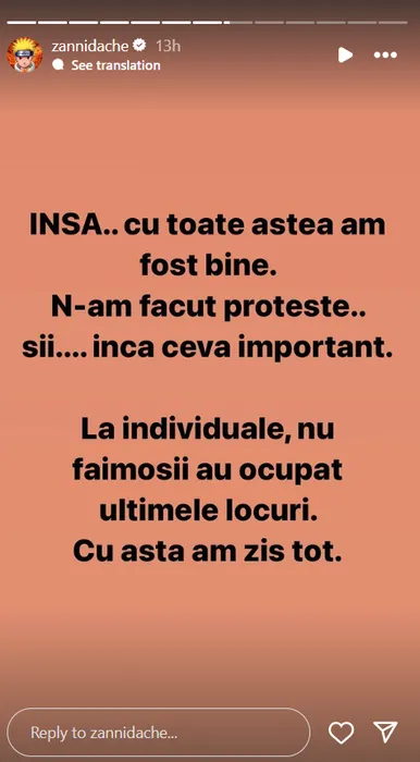 Postarea făcută de Zanni / Foto: Instagram