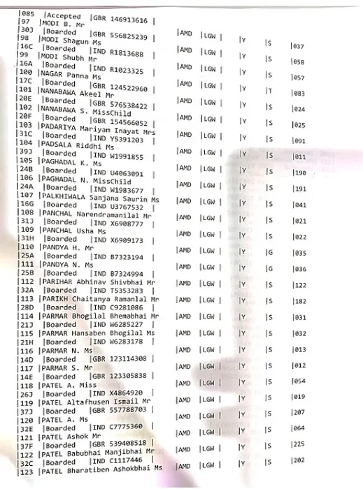 Numele pasagerilor din avionul Boeing 787-8 Dreamliner.