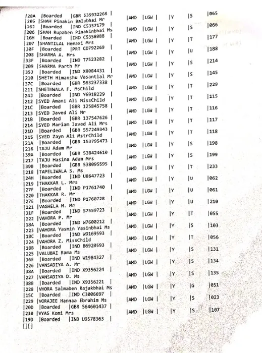 Numele pasagerilor din avionul Boeing 787-8 Dreamliner.