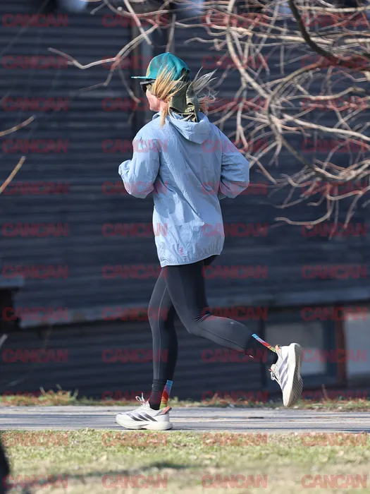 Delia, îmbrăcată sport, aleargă prin parc