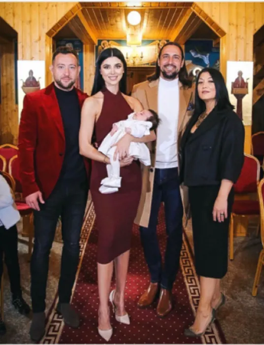 Denis Ștefan și bebelușa Cristina și-au creștinat fetița. Primele imagini de la botez