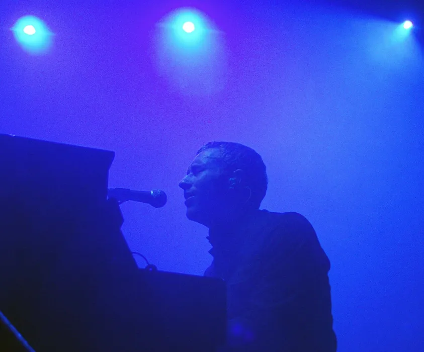 Chris Martin de la Coldplay cântă la Gwinnett Center Arena din Duluth, Georgia pe 6 martie 2003. Foto: Profimedia