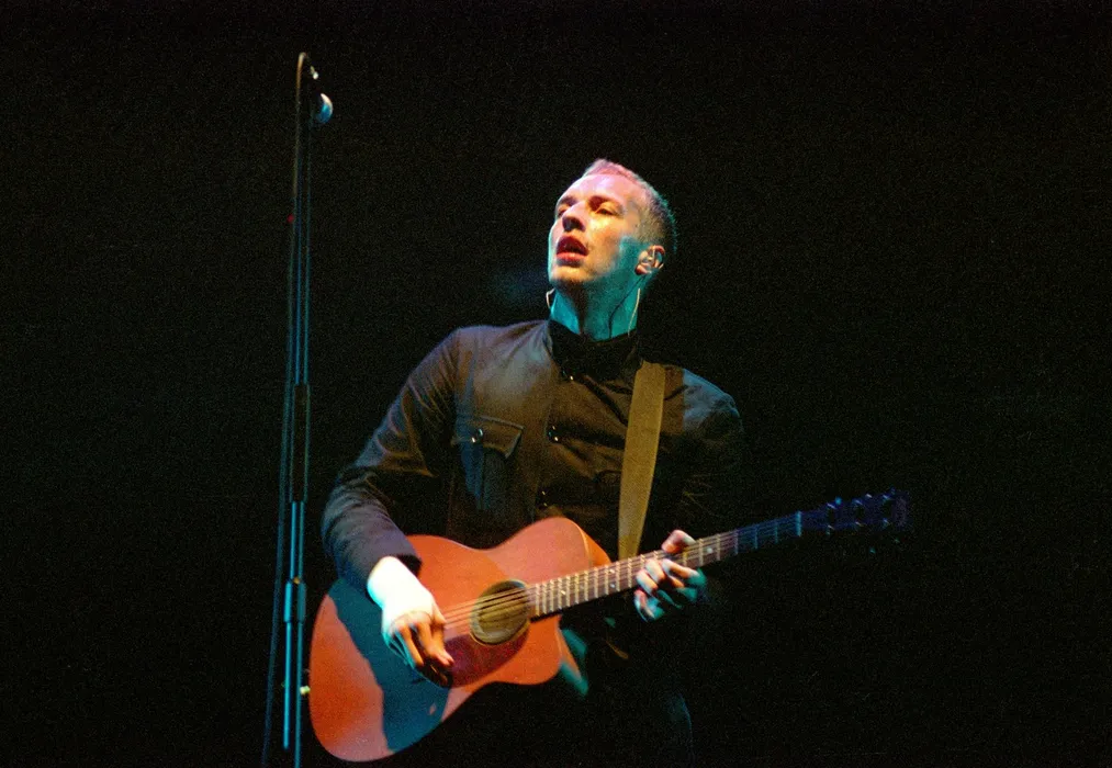Chris Martin de la Coldplay cap de afiș la Festivalul Glastonbury, Marea Britanie 2002. 28 iunie 2002. Foto: Profimedia
