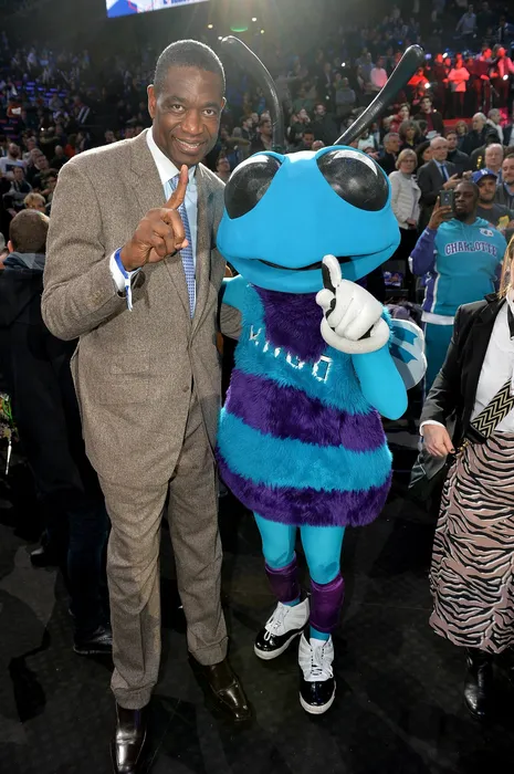 Dikembe Mutombo et Hugo ( mascotte des Hornets ) au match de NBA Game Paris 2020 entre les Bucks de Milwaukee et les Charlotte Hornet à l'AccorHotels Arena à Paris le 24 janvier 2020. © Veeren / Bestimage Basket ball game Milwaukee Bucks vs Charlotte Hornet at AccorHotels Arena in Paris on january 24th 2020