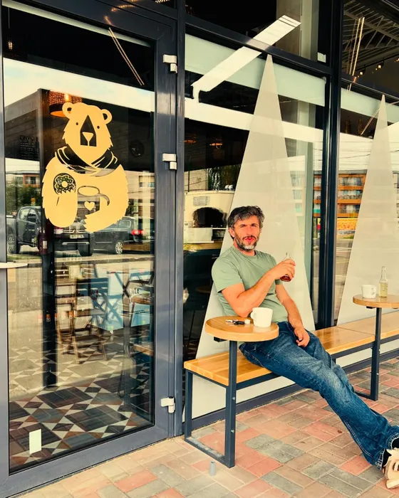Dragoș Bucur, în fața brutăriei sale/ Sursa foto: Instagram