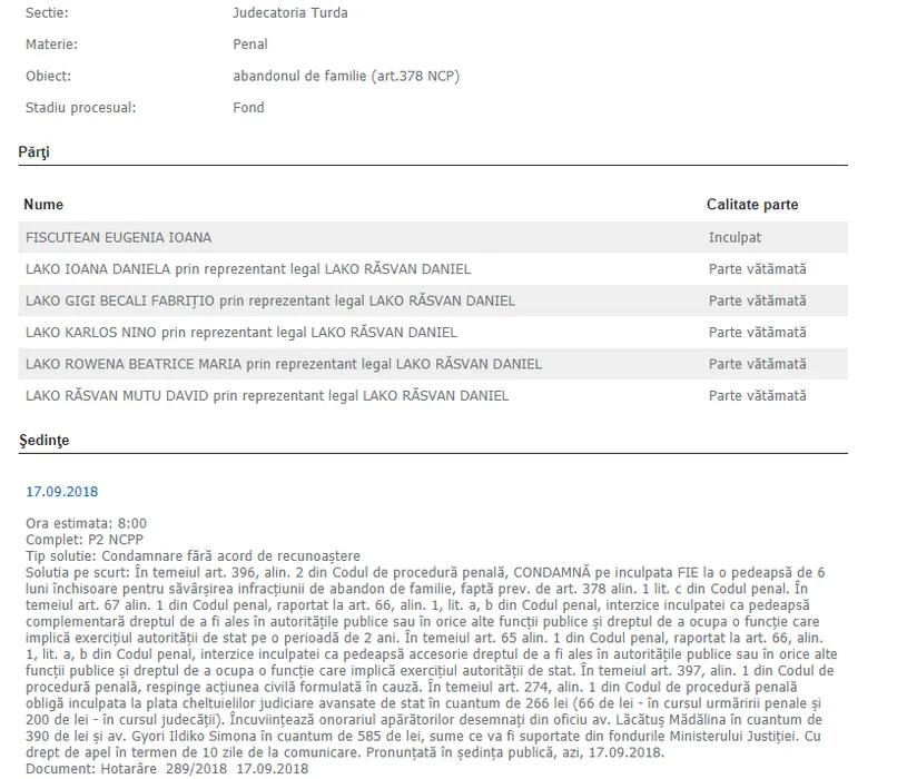 Decizia prin care mama lui Gigi Becali Fabrițio a fost condamnată