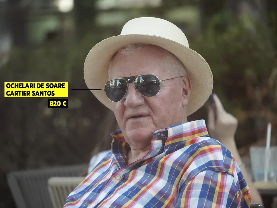 Pe terasă, Nea Mitică a purtat o ochelari de soare Cartier Santos care costă "doar" 820 de euro (Foto: CANCAN.RO)